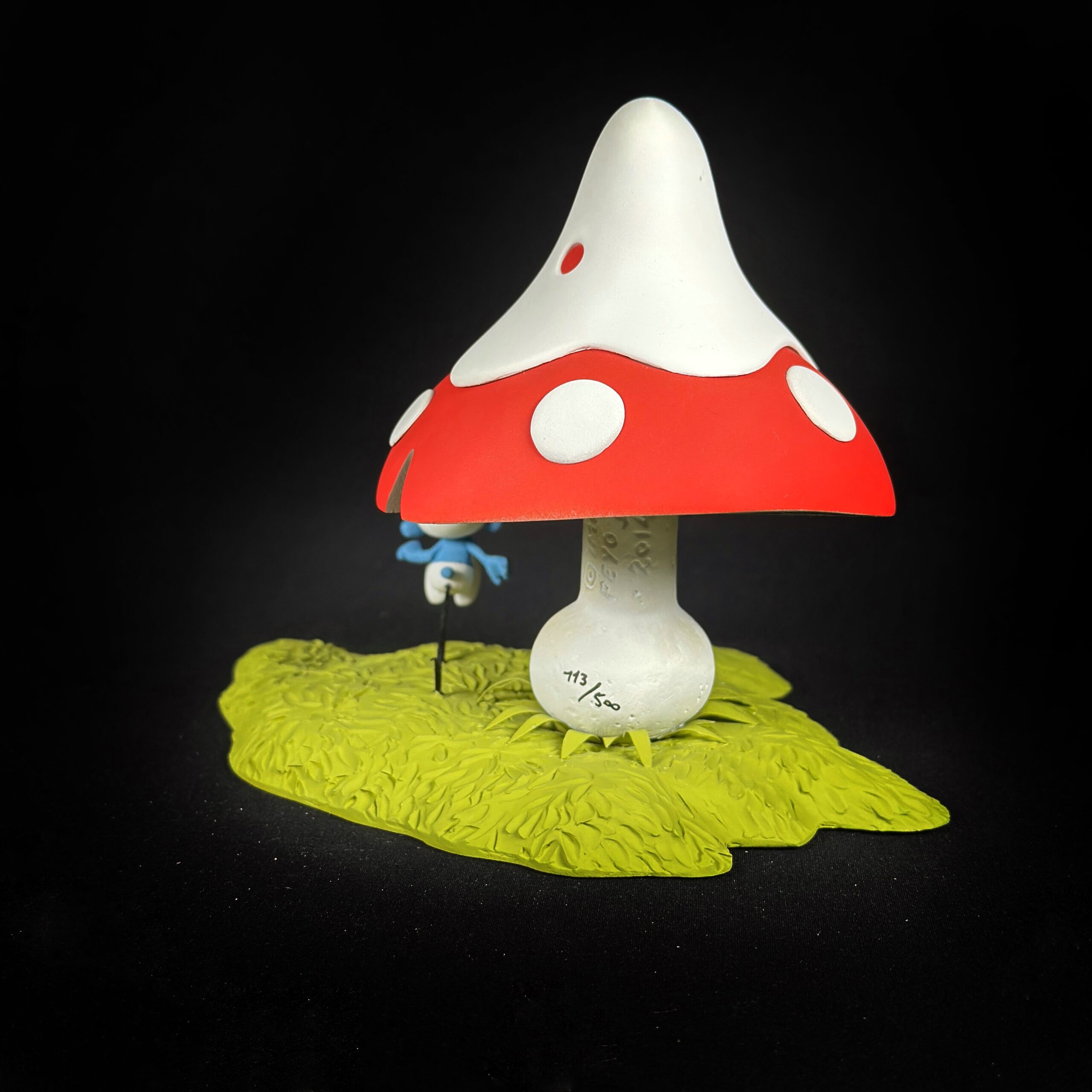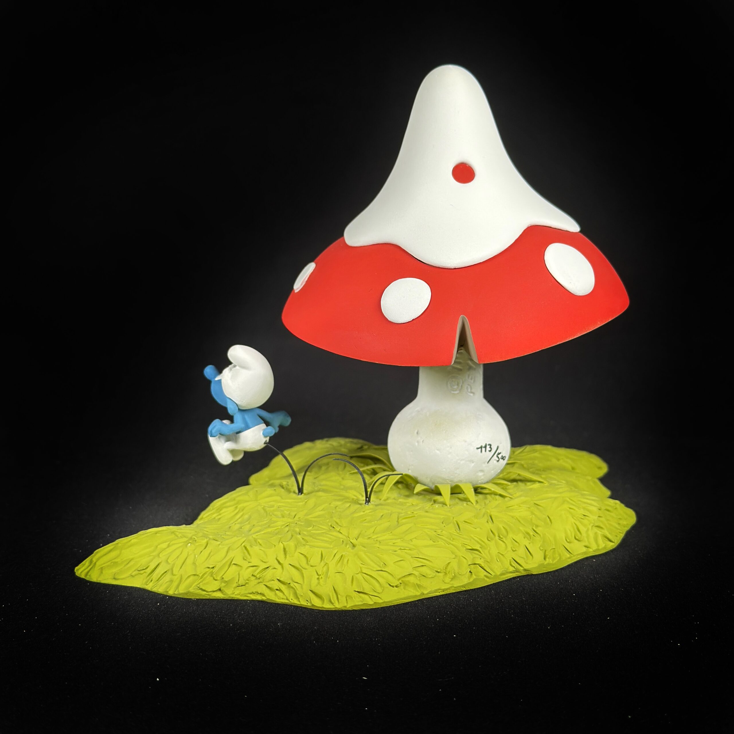 Cette scène particulièrement schtroumpfante date de cette époque lointaine et résume à elle seule toute la vie des Schtroumpfs : bondir gaiement sans se poser plus de questions et vivre parmi les champignons dont ils se faisaient des abris, des cachettes, voire des observatoires.