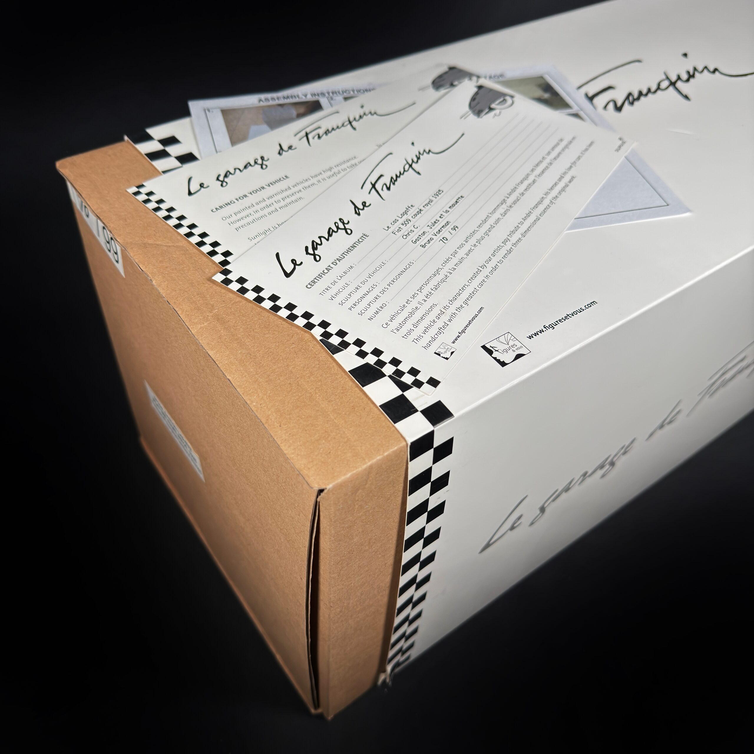 « Il était temps, pour ce sixième modèle de la collection du « Garage de Franquin », de faire place au plus célèbre des garçons de bureau et à son inénarrable véhicule :