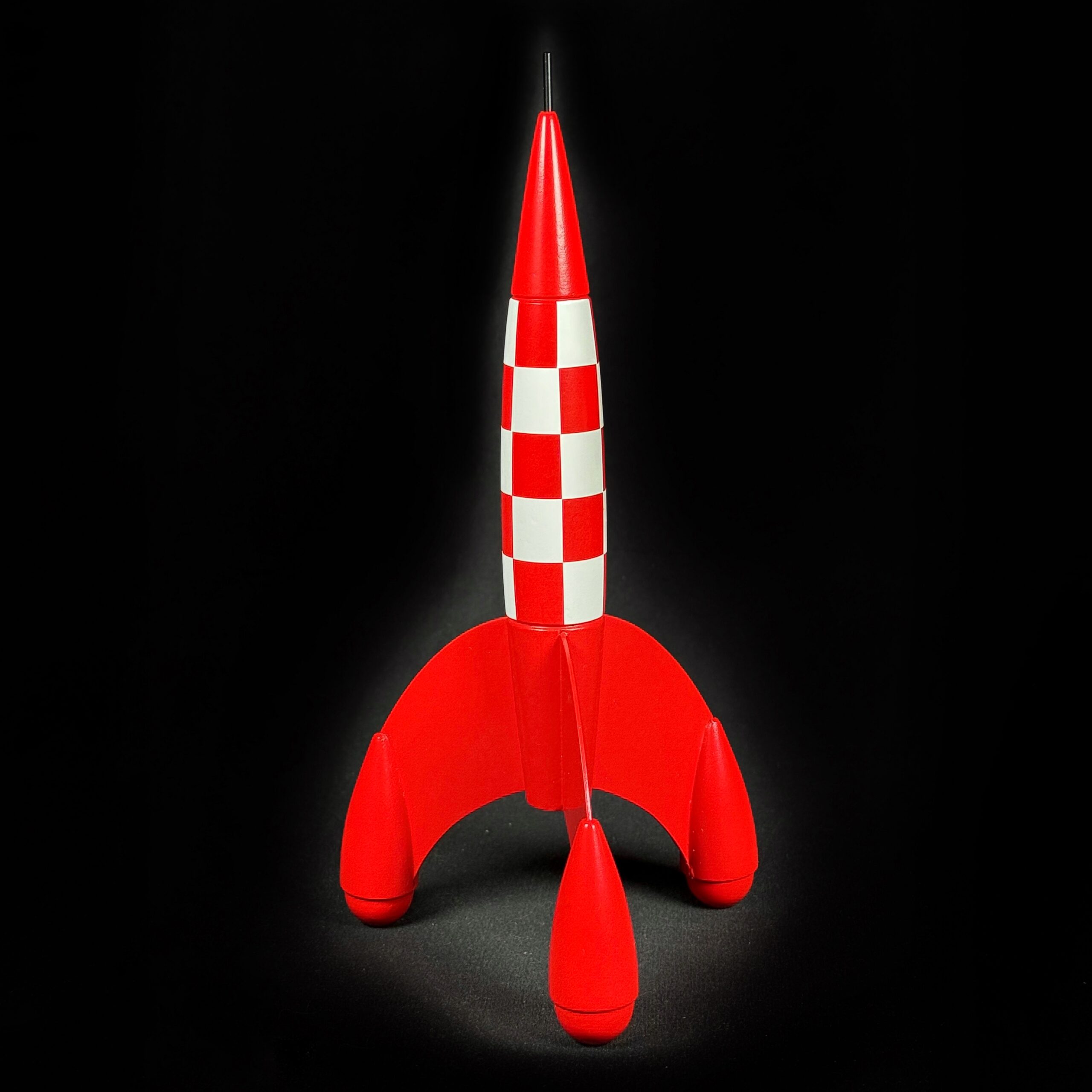 Objet mythique du diptyque lunaire Tintin entièrement réalisé à la main, en bois polychrome par M. Aroutcheff.