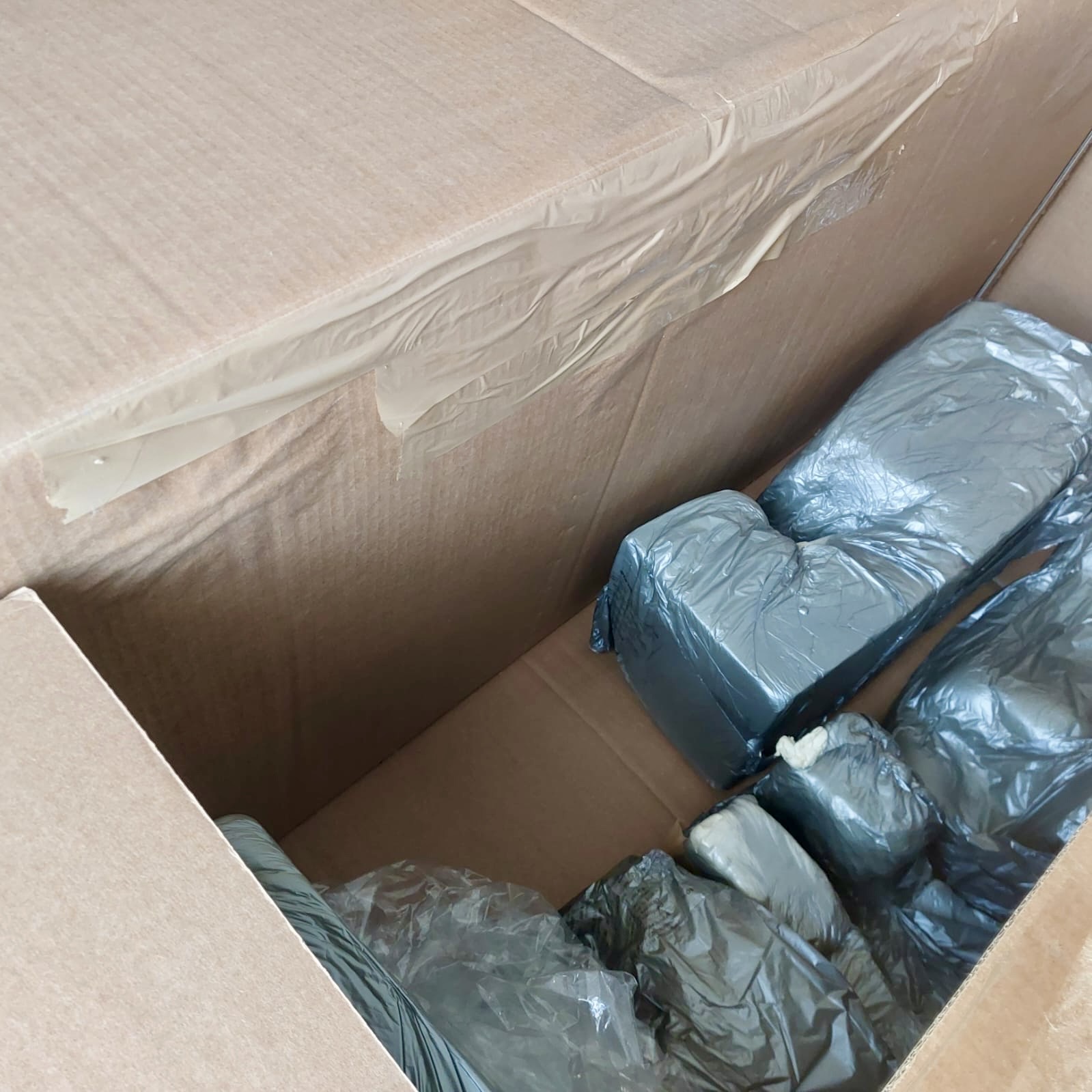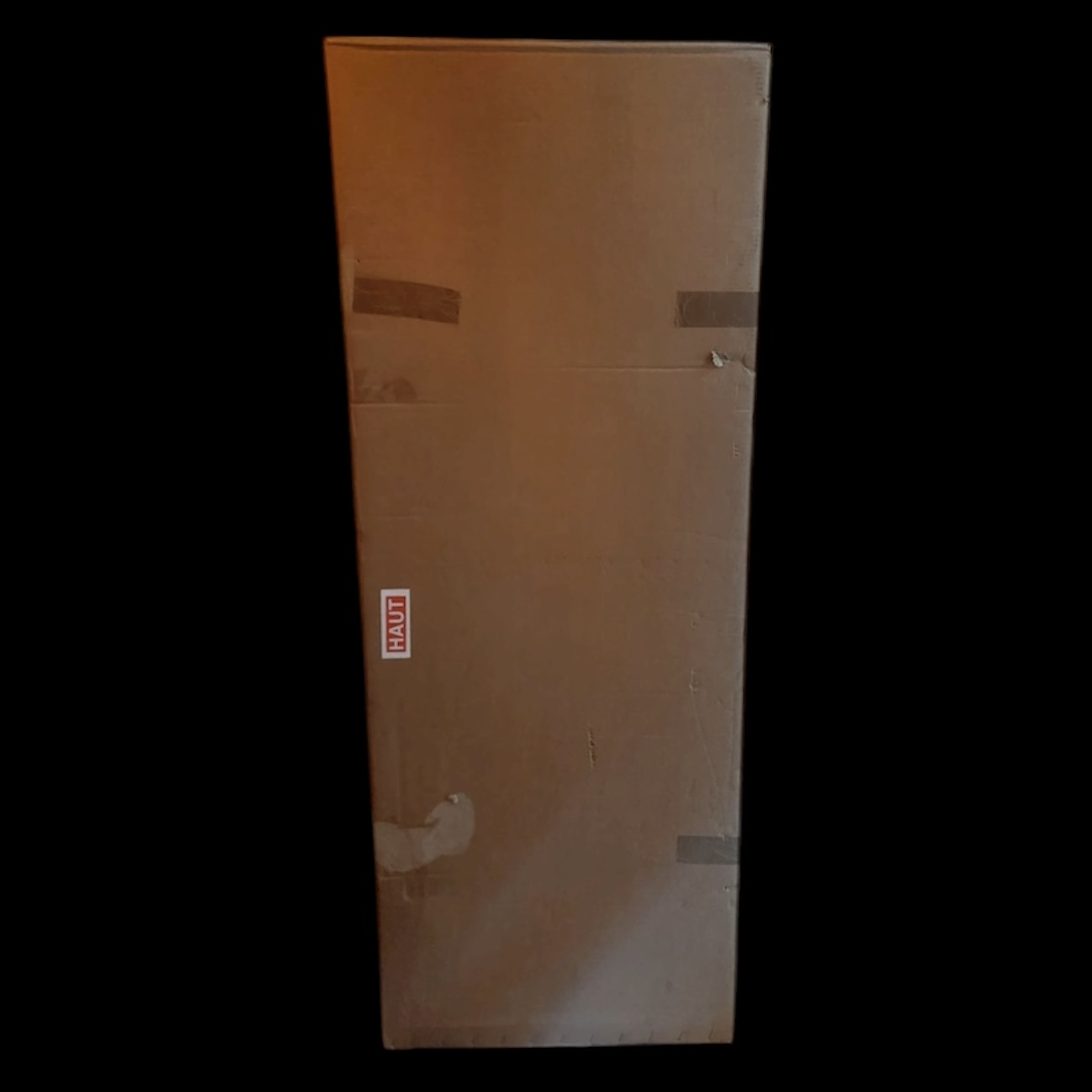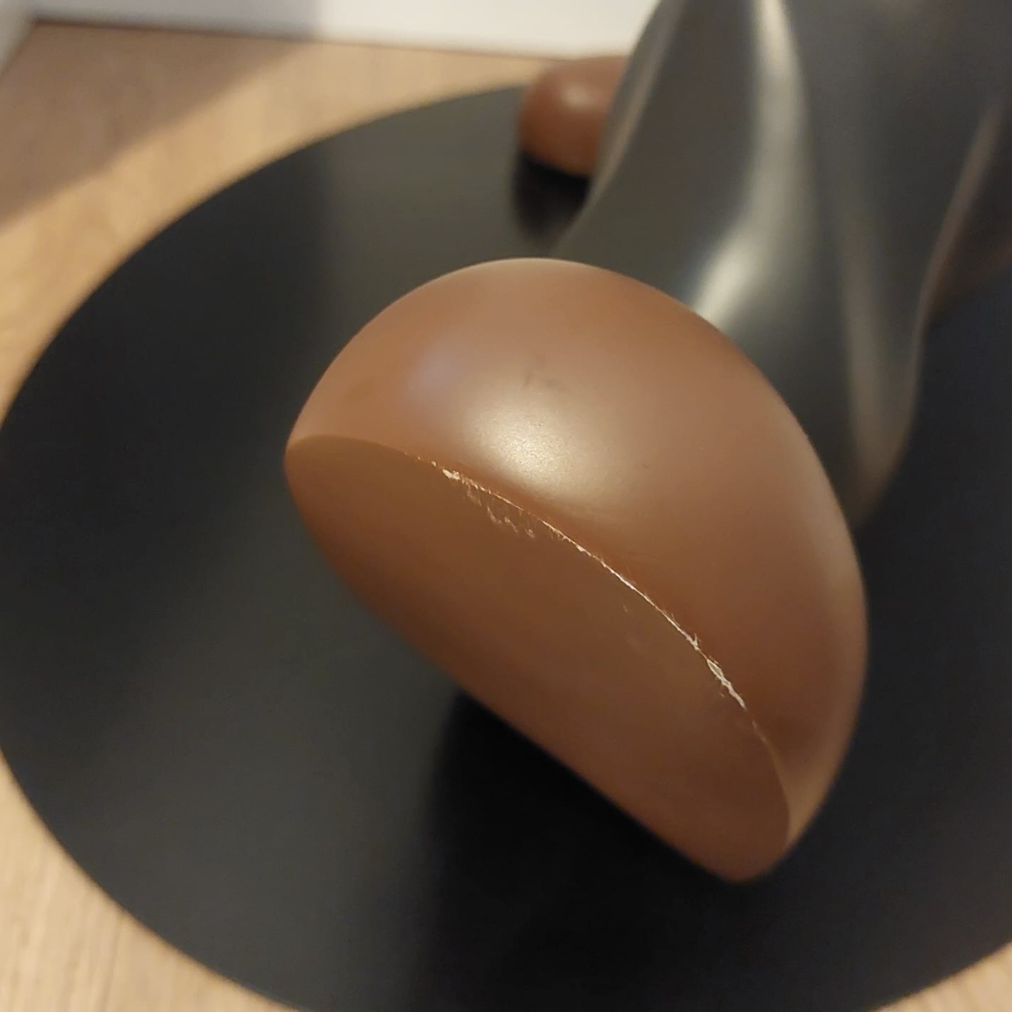 À noter qu’un des côtés de la boîte a pris l’humidité sur une zone isolée. Le seul défaut mineur que l’on pourrait signaler sur cette sculpture est la légère éraflure présente sur l’arête de la chaussure gauche, comme en attestent les photos.