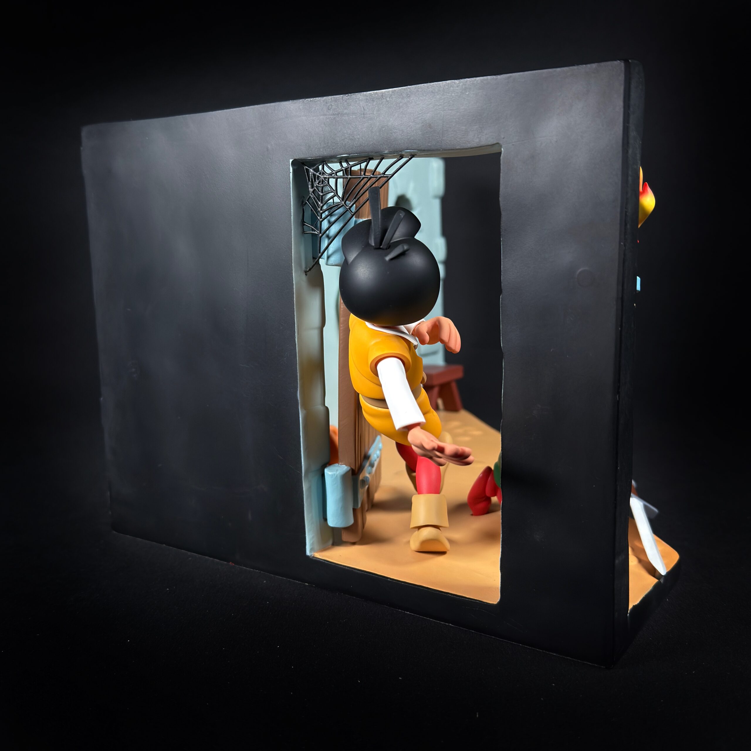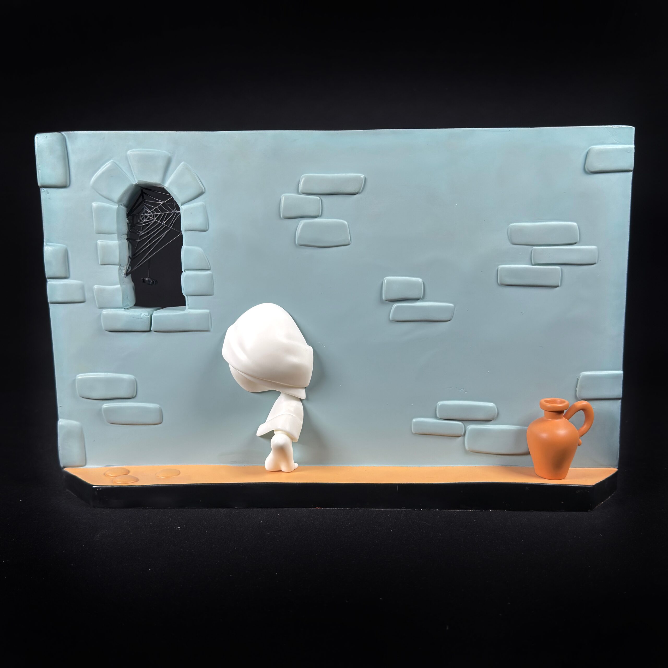 Tant qu’à avoir un fantôme sous la main, nous n’allions pas nous priver du plaisir de le représenter en train de traverser un des murs épais du chateau.