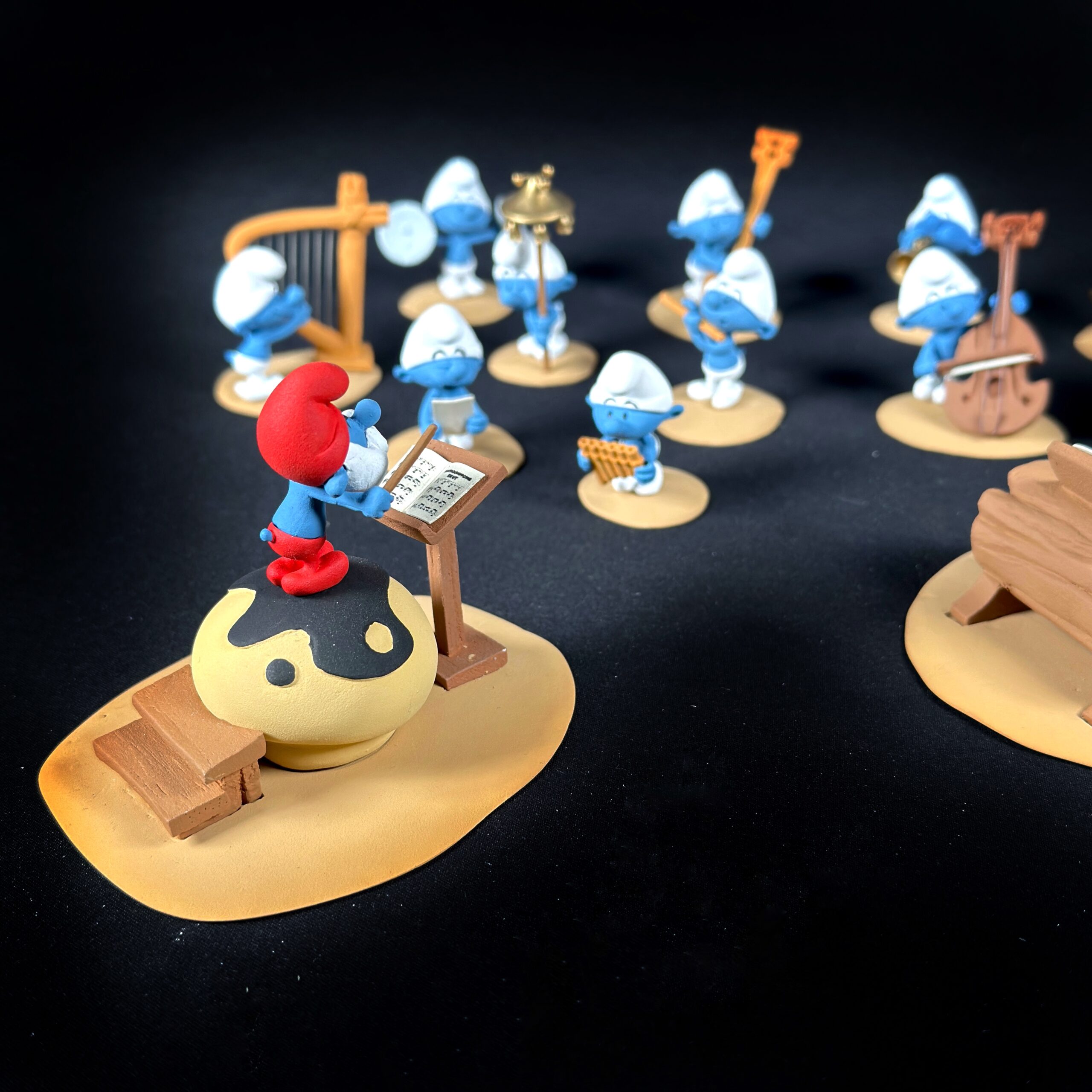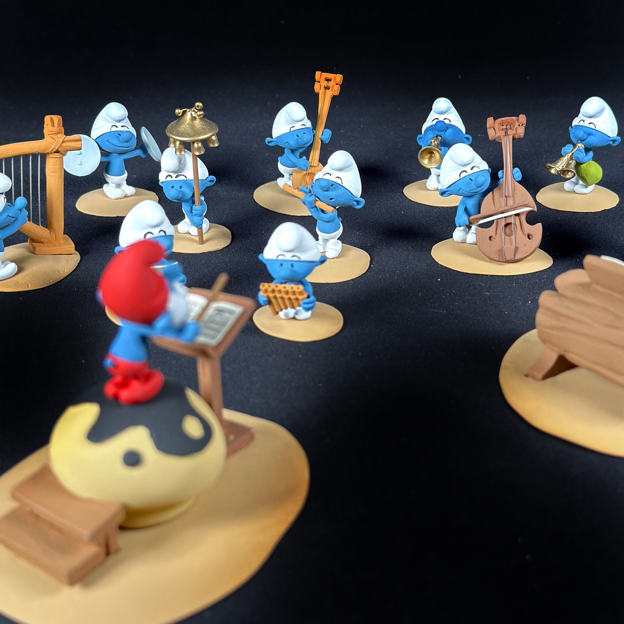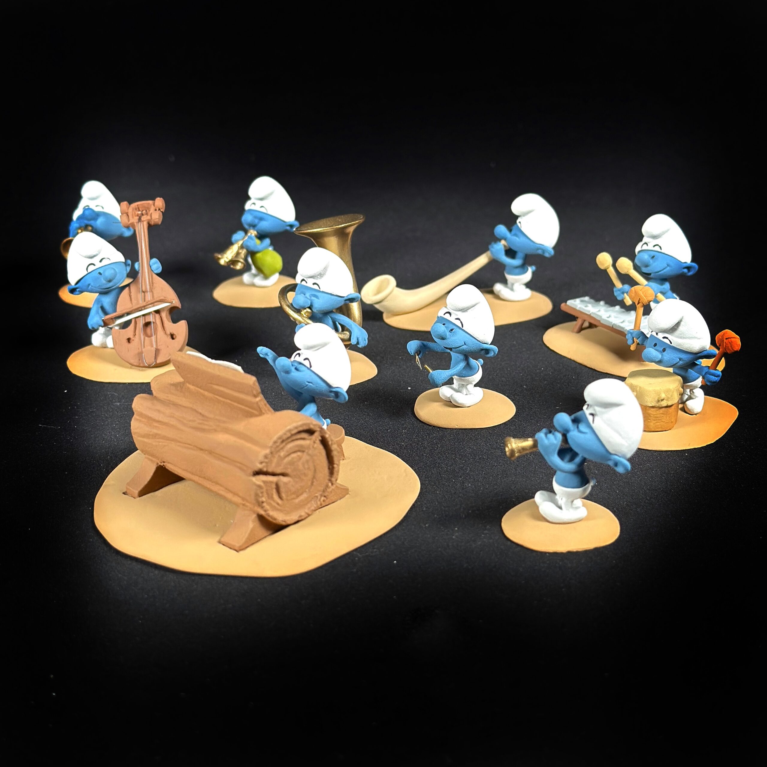 Aucun doute : pour notre plus grand plaisir, Peyo s’est lâché et à dessiné tous les instruments qui lui passaient par la tête ! Il était alors impossible pour nous de résister à l’envie d’en faire une version en trois dimensions !
