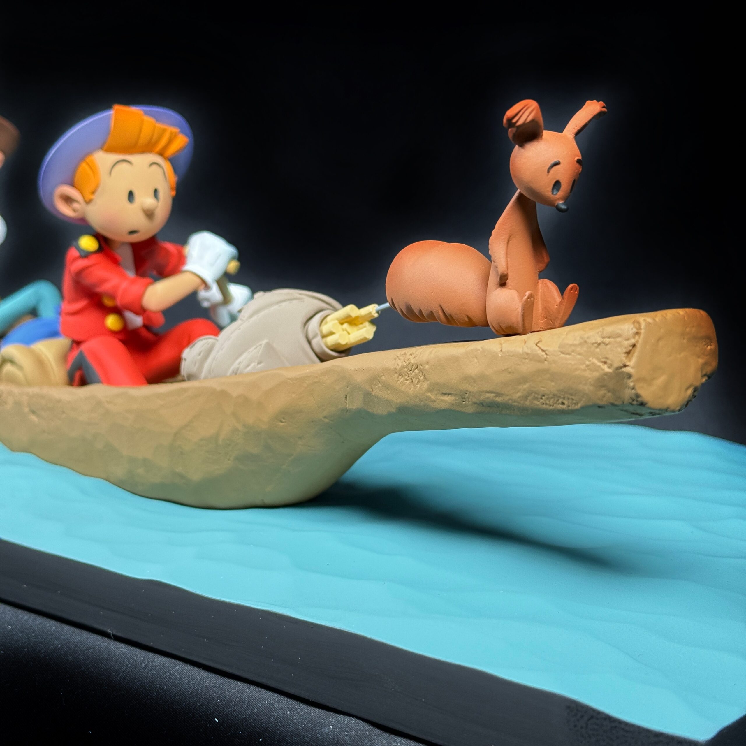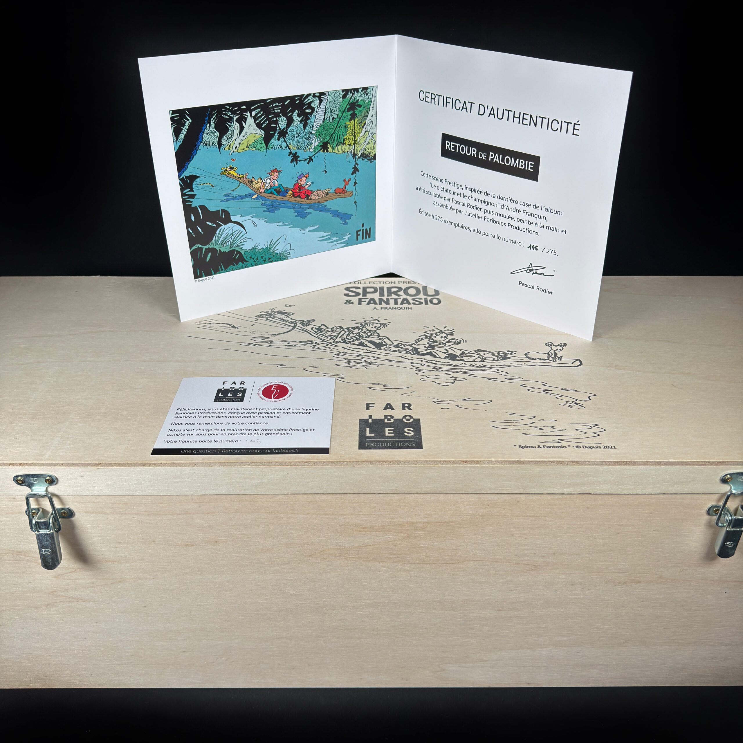 Pirogue Spirou et Fantasio Retour de Palombie signée Fariboles Productions en excellent état.