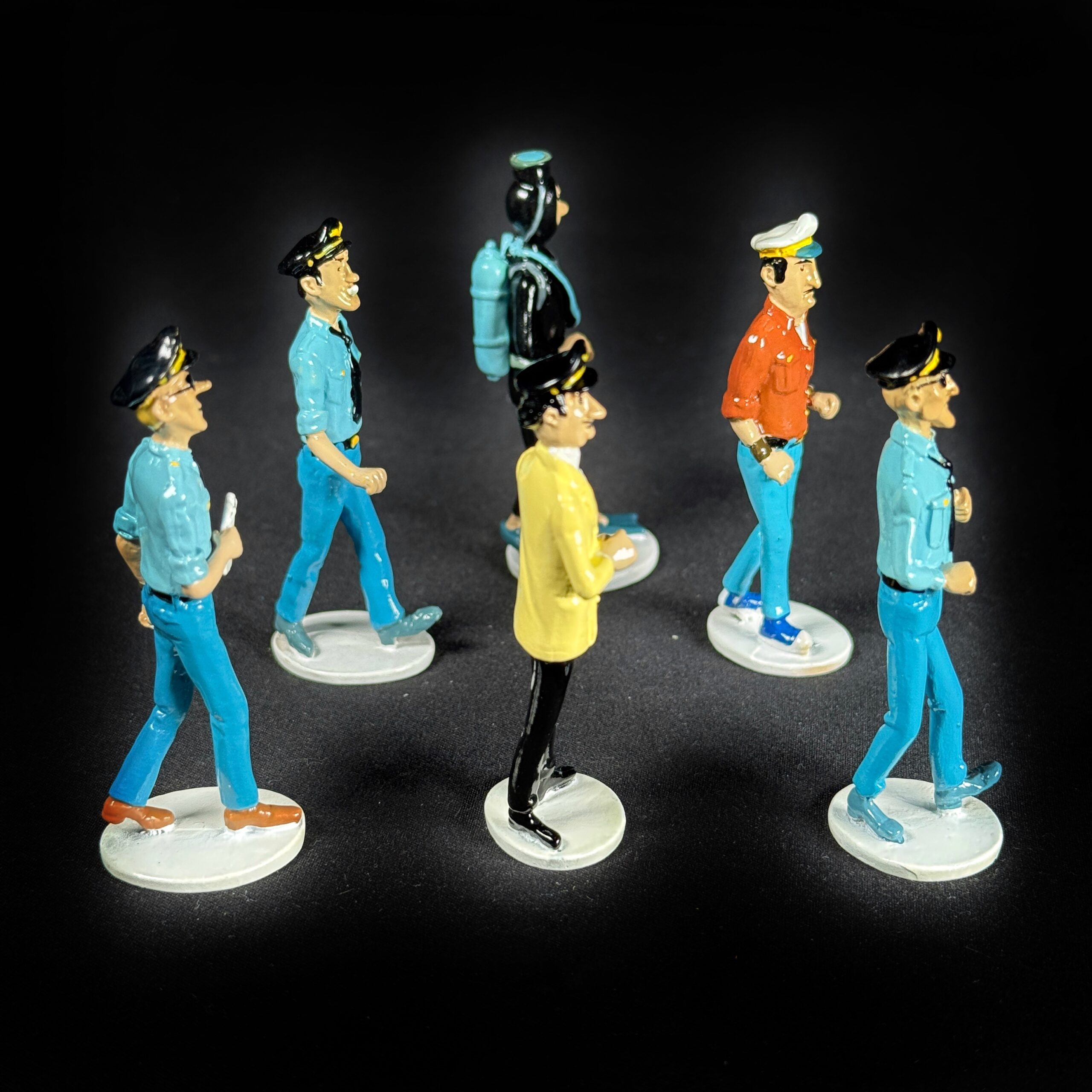 Figurines en métal polychrome sculptées et réalisées à la main par les ateliers Moulinsart.